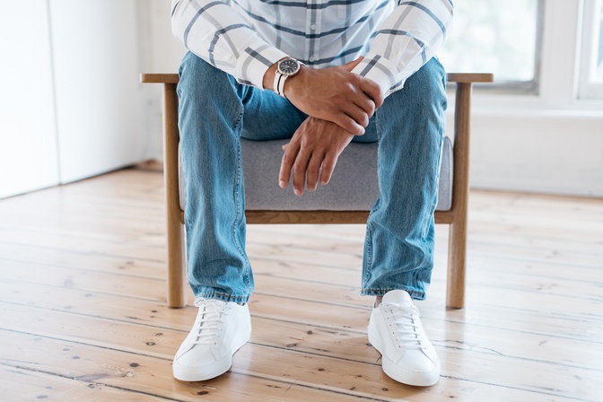 \r\n\r\nJacket by Oliver Spencer, oxford shirt by Maison Kitsune, jeans and desert boots by APC, bag by C6\r\n\r\n\r\nLook 3: Casual & Collected\r\n\r\n\u201cEven for the casual interview, always wear a shirt,\u201d Jesus instructs, \u201cYou want to communicate that you are well groomed and classy no matter what you're doing.\u201d\r\n\r\nThis look would work well for a more relaxed retail environment or hospitality. Light jeans with a clean hem and the tone-on-tone checked shirt are fun but still respectable.\r\n\r\nJesus says this look is all about the details, \u201cBring it up a notch with clean white sneakers, a sport timepiece and a hint of expensive perfume.\u201d\r\n\r\n